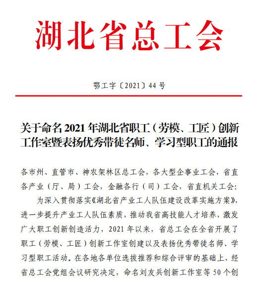 近日,襄陽市總工會印發(fā)通報,對全市職工(勞模、工匠)創(chuàng)新工作室、產(chǎn)業(yè)工人培訓(xùn)基地暨優(yōu)秀帶徒名師、學(xué)習(xí)型職工進行通報表彰。公司精沖事業(yè)部趙林昌同志被表彰為“2021年襄陽市優(yōu)秀帶徒名師”,成為襄陽市獲此殊榮的30名優(yōu)秀代表之一。
