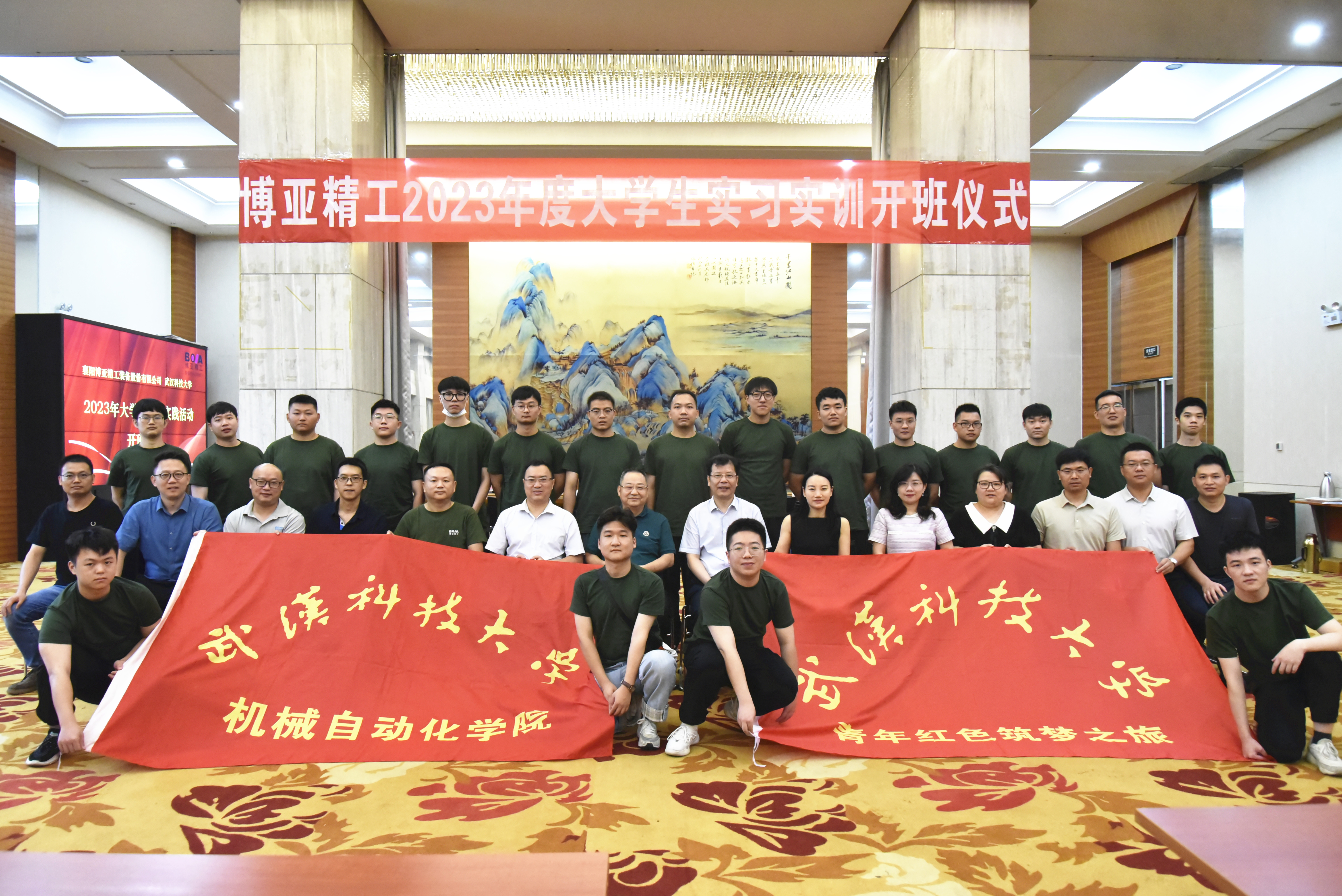 7月25日上午,博亞精工與武漢科技大學(xué)2023年大學(xué)生暑期實(shí)踐活動(dòng)開(kāi)班儀式在公司日產(chǎn)總部313會(huì)議室隆重舉行。儀式由公司人力資源中心總監(jiān)劉濤主持。公司李總攜財(cái)務(wù)總監(jiān)康曉莉、副總經(jīng)理鄧杰禮等相關(guān)領(lǐng)導(dǎo)參加。武漢科技大學(xué)科學(xué)技術(shù)發(fā)展院院長(zhǎng)夏緒輝教授、機(jī)械自動(dòng)化學(xué)院黨委副書記瞿孝平、機(jī)械自動(dòng)化學(xué)院副院長(zhǎng)王蕾副教授、綠色智能制造工程研究所副所長(zhǎng)張澤琳副教授、機(jī)械自動(dòng)化學(xué)院博士服務(wù)代表張歡博士和19名實(shí)習(xí)大學(xué)生等共同出席。