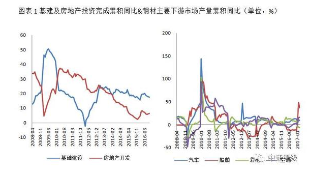 2016年下半年和2017年一季度,鋼鐵市場(chǎng)整體回暖,上游環(huán)保限產(chǎn)、淘汰中頻爐等落后產(chǎn)能以及下游經(jīng)銷商補(bǔ)庫(kù)存、地方政府加大基建投資等因素疊加,市場(chǎng)供需狀況趨于好轉(zhuǎn)。房地產(chǎn)投資和基建投資領(lǐng)域接連發(fā)力帶動(dòng)建筑鋼材下游市場(chǎng)需求的上升,汽車、空調(diào)等板材主要下游市場(chǎng)從2016年上半年開(kāi)始也有恢復(fù)性增長(zhǎng)。